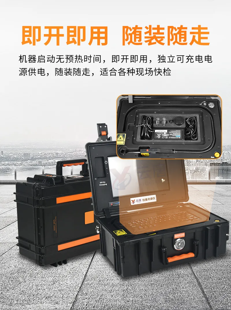便攜式設計:獨立可充電電源供電,隨裝隨走,適合各種現場快檢