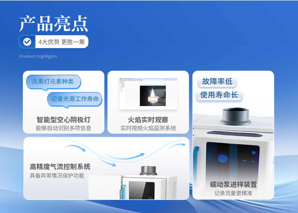 儀器配備智能型高性能空心陰極燈,儀器能夠自動識別元素?zé)粼胤N類、出廠編號、記錄光源工作壽命、提供儀器**工作條件等 3、高精度蠕動泵進(jìn)樣系統(tǒng)