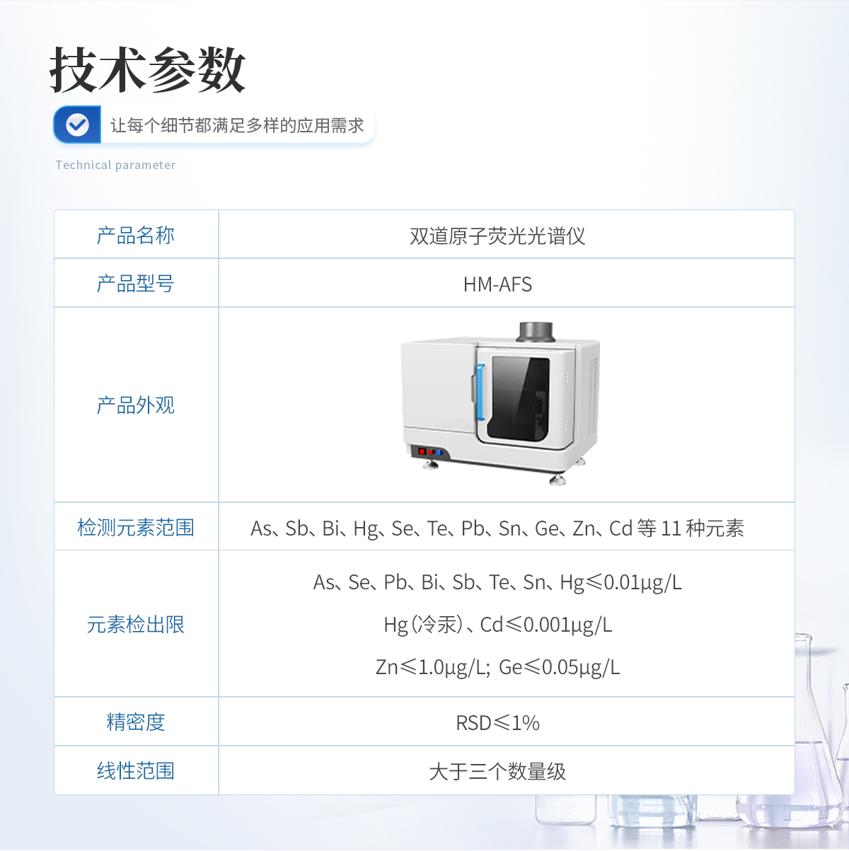 雙道原子熒光光譜儀廣泛應(yīng)用于汞(Hg)、砷(As)、銻(Sb)、鉍(Bi)、硒(Se)、碲(Te)、鎘(Cd)、鍺(Ge)、鉛(Pb)、錫(Sn)、鋅(Zn)等11 種元素的痕量、超痕量分析,體積小巧,性能穩(wěn)定,操作簡單。