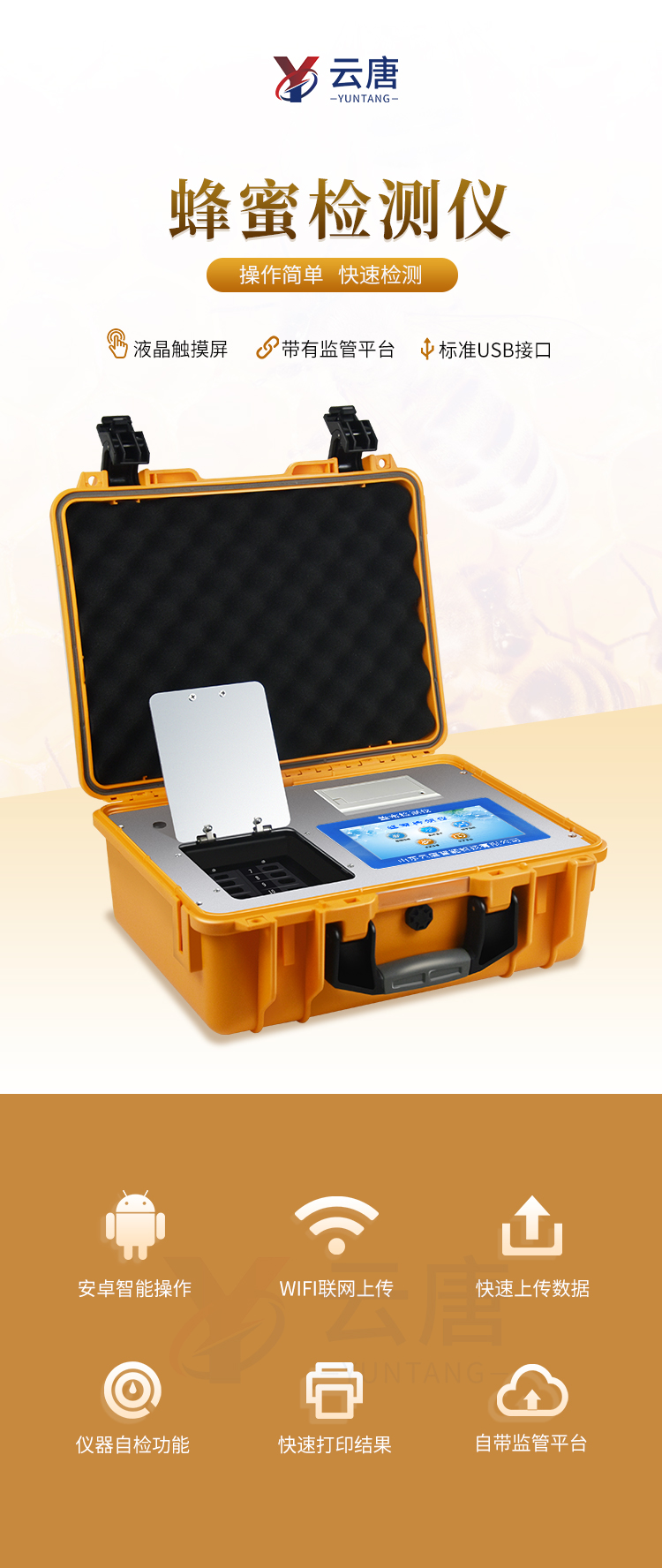 檢測項目:蜂蜜蔗糖、蜂蜜還原糖(葡萄糖和果糖)、蜂蜜羥甲基糠醛、蜂蜜酸度、蜂蜜中農藥殘留、蜂蜜淀粉酶值、蜂蜜中脯氨酸、蜂蜜水分、蜂蜜糖分、蜂蜜中灰分,應用范圍:應用于現場檢測蜂蜜蔗糖、葡萄糖和果糖、羥甲基糠醛、酸度、農殘、淀粉酶、脯氨酸、水分、糖分、灰分含量的蜂蜜快速檢測儀,可廣泛應用于各類蜂蜜品質的快速定量檢測。