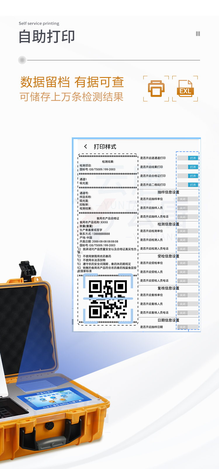 5、配備新一代嵌入式熱敏打印機,可選擇手動打印或者自動打印,檢測完成可自動打印檢測報告和二維碼。