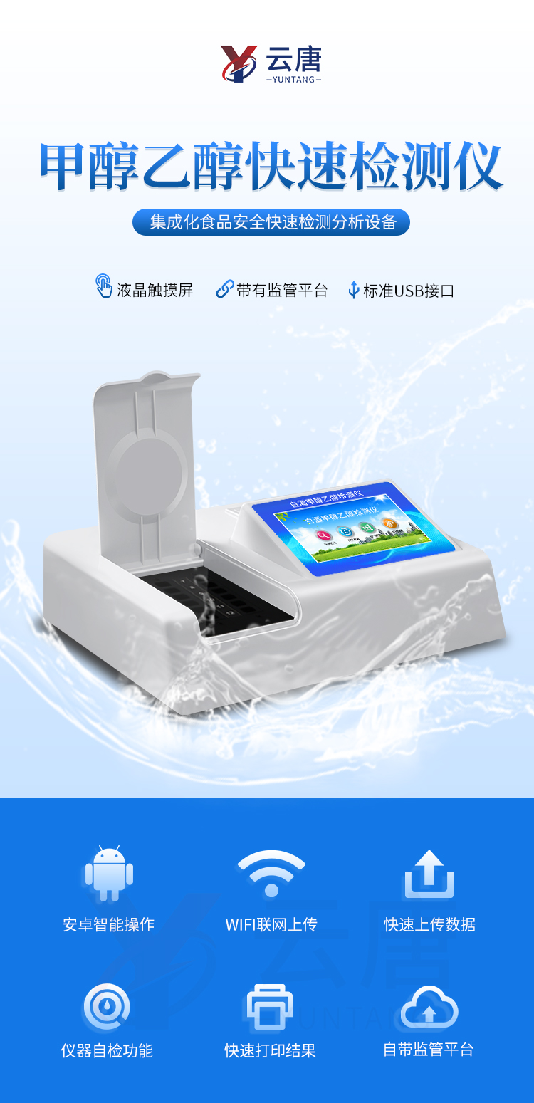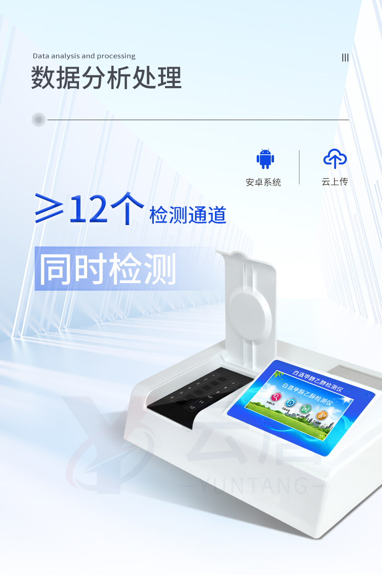 1、 檢測項目:可快速檢測各類食品中的甲醛的含量,儀器預留其他項目檢測程序和端口,根據日后需求可方便的自主增加檢測項目。日后可升級為檢測,水產品,肉制品,面制品的綜合類型儀器。