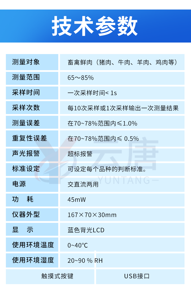 YT-RLS肉類水分檢測儀技術參數: