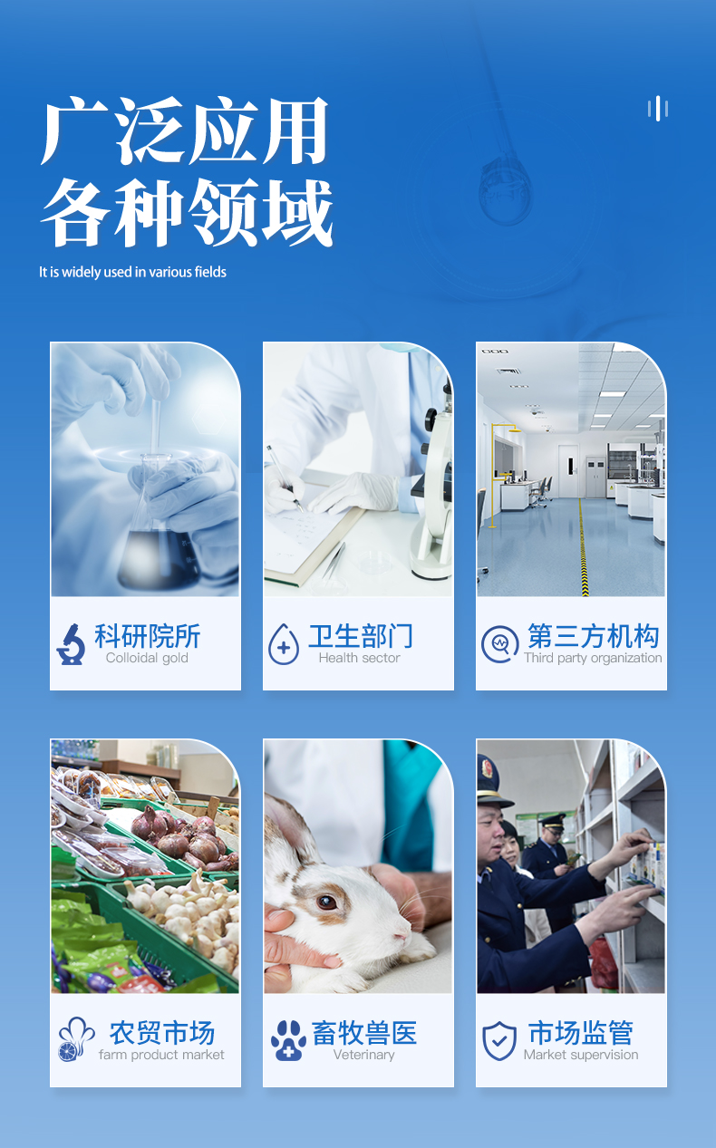 該高智能獸藥殘留檢測儀為集成化食品安全快速檢測分析設備,目前已于食藥監局、衛生部門、高教院校、科研院所、農業部門、養殖場、屠宰場、食品肉產品深加工企業及檢驗檢疫部門等單位廣泛使用。