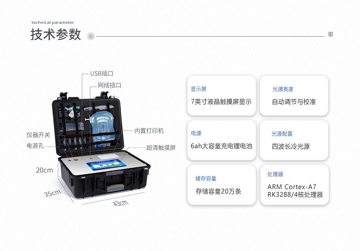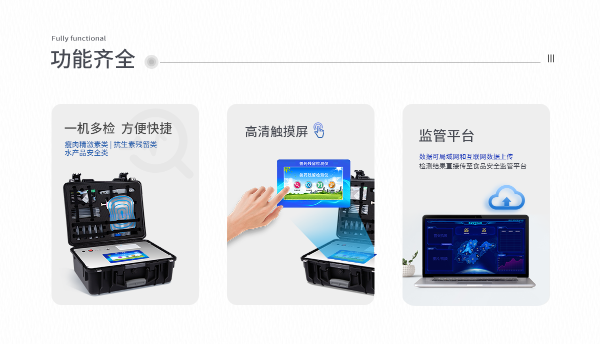 7、一體化便攜式快檢設備,滿足現場及流動檢測使用需求,能夠在同一軟件下實現所有檢測項目的檢測,并可通過同一窗口直觀顯示檢測結果。
