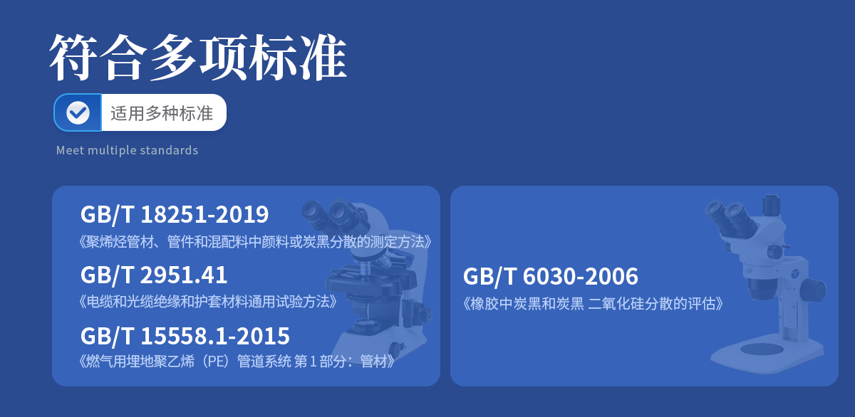 炭黑分散度檢測儀根據(jù)國際標(biāo)準(zhǔn) GB/T 18251-2000針對聚烯烴管材、管件和混配料中顏料或炭黑分散的檢測儀器。該儀器適配基于軟件及相應(yīng)的顯微鏡,通過對炭黑粒團(tuán)的尺度、形態(tài)、及散布情況的測量,可以建立起這些參數(shù)與力學(xué)性能、抗靜電性能、吸濕性能等宏觀性能指標(biāo)的內(nèi)在聯(lián)系。對塑料材料的品質(zhì)保障、生產(chǎn)工藝、新品研發(fā)產(chǎn)生積極影響,同時推進(jìn)企業(yè)和行業(yè)技術(shù)水平的快速提升。