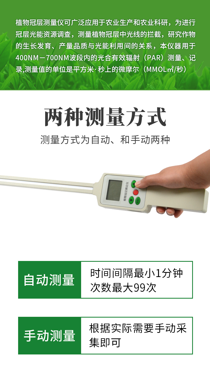魚眼鏡頭可以伸入至冠層中:鏡頭安裝在搖臂一端,由于小巧和帶有測量桿,可以方便地水平向前或垂直向上伸入到冠層不同高度處,快速地進行分層測量,測出群體內光透過率和